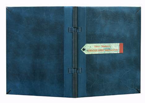 coins des plats, doublures de nubuck bleu nuit, couverture et dos conservés, emboîtage demi-box gris souris titré (