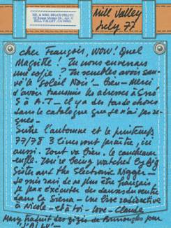 Correspondance de Claude Pelieu adressée des Etats-Unis à François Di Dio, relative aux publications du Soleil Noir et à