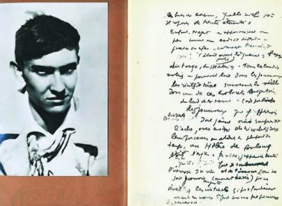 Photographie de Radiguet contrecollée à l’interieur du premier plat de l’un de deux volumes.