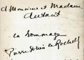 à Monsieur et Madame Autant, en hommage. Pierre Drieu La Rochelle