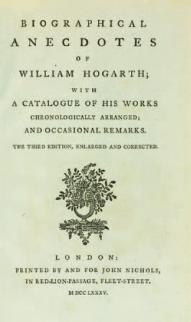 79 NICHOLS (John). Biographical anecdotes of William Hogarth, with catalogue of his works chronologically arranged ;