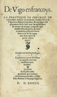 221 VIGO (Giovanni de). De Vigo en Françoys. La Practique et cirurgie de très excellent docteur en médecine Maistre