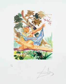 4 ILLUSTRATIONS GRAVÉES SUR BOIS, SIGNÉES PAR DALI, et une planche reproduisant l’ensemble des illustrations.
