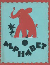 , broché, plats illustrés. Chaque lettre est accompagnée d’une phrase et entourée d’une frise illustrée.