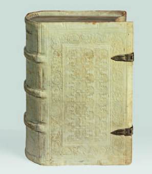 avec bordure composée de portraits et d’angelots, titre à l’encre sur le dos, fermoirs de laiton ouvragé (