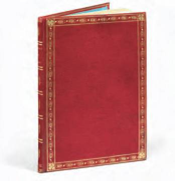 de palmettes et feuilles alternées sertie d’un double filet dorés, dos à nerfs orné, roulette intérieure dorée, doublure et