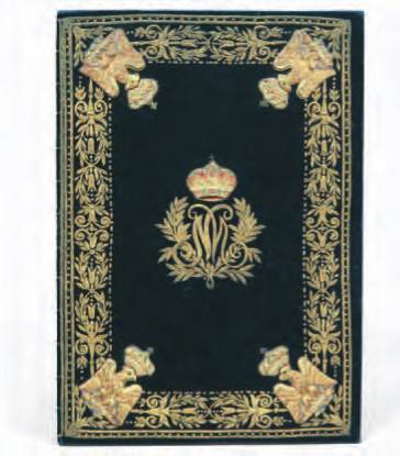 Portefeuille au chiffre couronné de l’Empereur. [Vers 1806], grand in-4°, velours de soie bleu nuit, rinceaux sertis