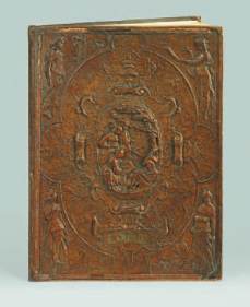 de coquilles, dos lisse orné d’un encadrement doré identique, large roulette florale intérieure, doublure et gardes de