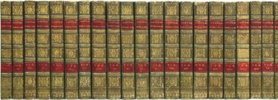 42 volumes in-12, veau vert d’eau, roulette dorée en