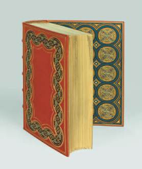 vertes, dos orné de même, doublure de maroquin brun-vert ornée d’un décor mosaïqué répété de rosaces et fleurs de