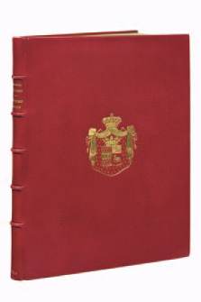 verts, souligné de filets dorés torsadés, multiples encadrements de filets et de pointillés dorés, gardes de moire rouge,