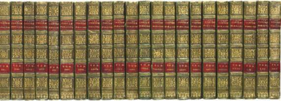 Charnière supérieure, coiffe de queue et coins restaurés, rares rousseurs.
