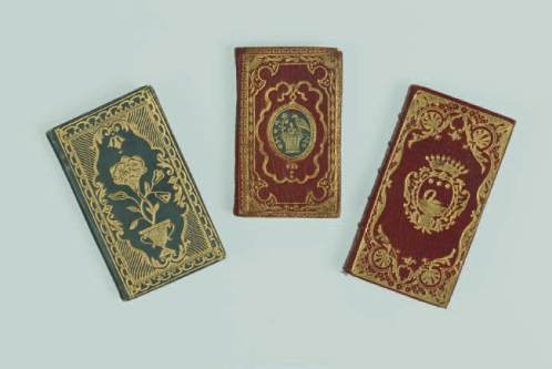 en un petit fleuron doré, coupes décorées, dentelle intérieure dorée, tranches dorées (