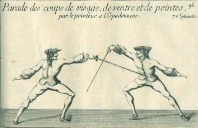 la manière de combattre, de l’épée de pointe seule, toutes les Gardes