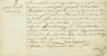 Céline Szymanowska. Ce document est signé par Adam Mickiewicz, ainsi que par Charles Sienkiewicz et Sophie