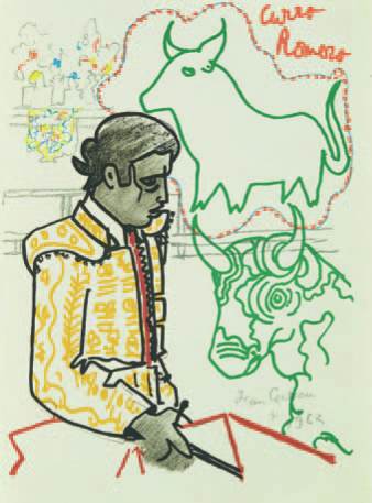 - un dessin original aux feutres de diverses couleurs signé Jean cocteau et daté