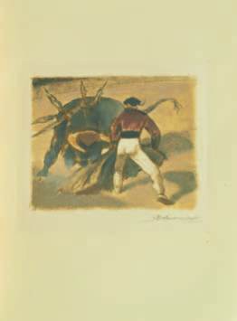 in-4°, maroquin rouge brique, sur le premier plat, titre mosaïqué de maroquin noir avec tête de taureau