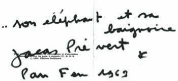 Envoi autographe signé à Philippe Soupault, « ...son éléphant et sa baignoire », daté