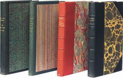 In-12, maroquin noir à cadre de papier décoré, dos lisse,