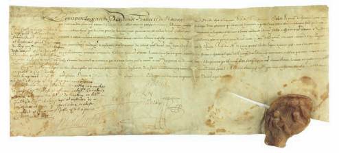 à la Guerre Michel Le Tellier, Paris 5 avril 1658 ; vélin oblong in-fol. (21 x 52,5 cm), partie de grand sceau de cire