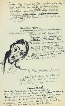 pour faire rire, elle montra son sexe »… En bas de la feuille, esquisse d’un Christ au crayon et à l’encre.