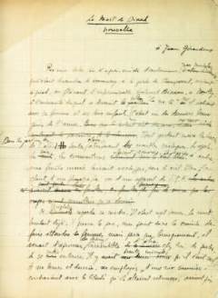 nombreuses ratures et corrections, avec des pages biffées. Il porte le sous-titre « nouvelle », et, en tête, la dédicace : « à