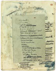 Ce carnet présente d’importantes ratures et corrections, avec de nombreux vers biffés. Il présente au verso du premier
