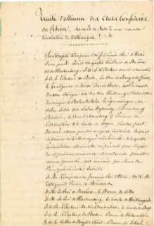 Napoléon et de seize princes allemands (Talleyrand, le baron de Cetto, etc.). Le présent manuscrit fut probablement une copie