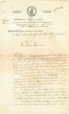 . L.S., Q.G. de Zürich 28 brumaire VIII (19 novembre 1799), au général de division Soult ;