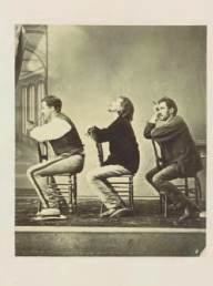 Aimé Vacher, Tristan Corbière et Ludovic Alexandre, chevauchant chacun une chaise et fumant, sont installés de profil, les