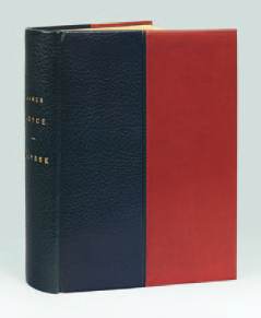 maroquin bleu, plats de percaline rouge, dos lisse avec le titre doré, tête dorée, couverture et dos, étui bordé (