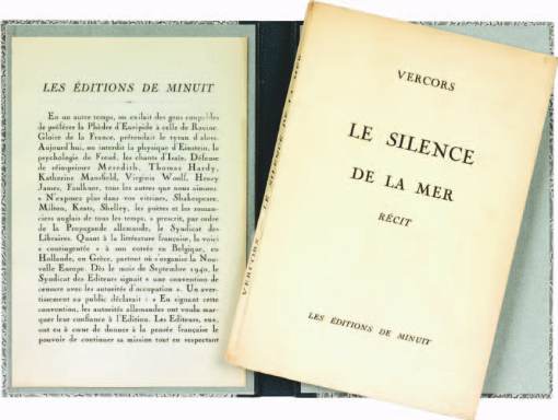 RARISSIME ÉDITION ORIGINALE CLANDESTINE du premier ouvrage paru aux Éditions de Minuit, qui avaient été