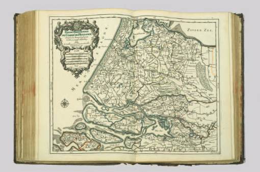 BEL ATLAS DE 122 CARTES AUX CONTOURS COLORIÉS, ENMAROQUINAUX GRANDES ARMES DE LOUIS XIV.