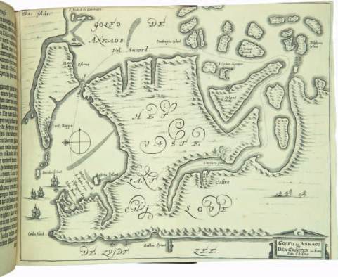Petite restauration à la page de titre. La carte du golfe d’Ankaos est un peu courte en tête.
