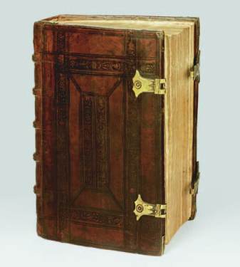 Reliure en veau estampé de l’époque, bien complète de ses fermoirs et renforts métalliques.