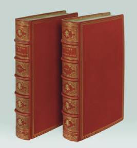 In-folio, maroquin rouge à long grain, roulette dorée en encadrement, dos lisse orné de fleurons et treilles dorés,
