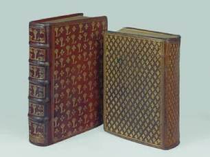 doré, plats entièrement semés de petites fleurs de lis dorées, dos lisse orné de même, tranches dorées, traces d’attaches