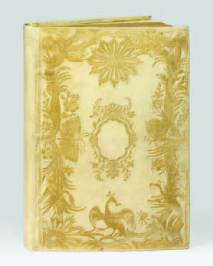 Belle reliure en veau blanc ornée d’une plaque à la Dubuisson, dont le décor a été complété par plusieurs grands fers