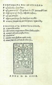 11 CHRYSOLORAS (Manuel). Erotemata.