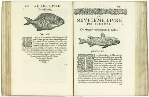 figures dans le texte d’animaux aquatiques, dont Baudrier attribue la composition, très fine, à
