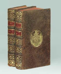 basane brune, armoiries au centre, dos orné, tranches rouges (