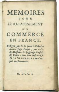259 LE PELLETIER (Jean). Mémoires pour le rétablissement du commerce en France. S.l. [Rouen],