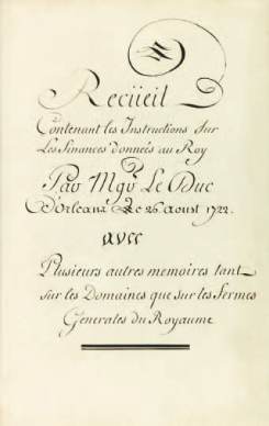 269 MANUSCRIT. — Recüeil contenant les instructions sur les finances données au Roy par Mgr le Duc d’Orléans le