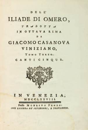 RARISSIME TRADUCTION DE L’ILIADE PAR CASANOVA.