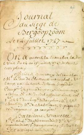 Récit inédit par un soldat français du fameux siège de la place forte de Berg-op-Zoom.