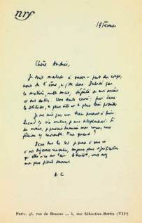 de réussir. B... est trop en avance vis-à-vis de moi et les autres ne m’aiment pas assez. J’irai vous voir. En attendant je vous