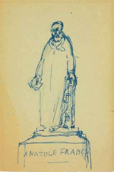 Dessins à l’encre bleue, rouge ou noire, la plupart esquisses et projets pour sa statue d’Anatole France, aujourd’hui dans les