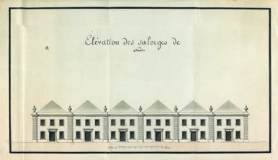 Vue des 6 bâtiments de la chambre de commerce dont la construction fut autorisée par Louis XVI en 1775. [Les Salorges