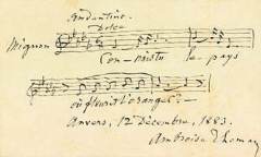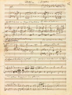 Manuscrit de premier jet noté sur 2 ou 3 portées, avec des indications d’instrumentation. Ambroise Thomas a écrit tout au