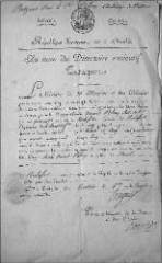Grand document (44 x 58 cm) sur papier bleuté (deux trous au centre dus
